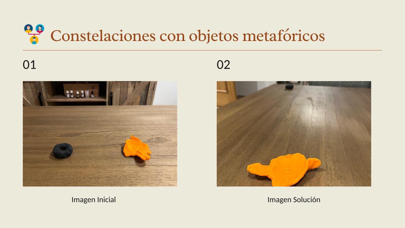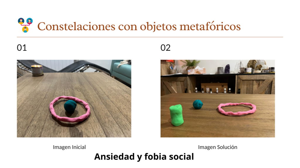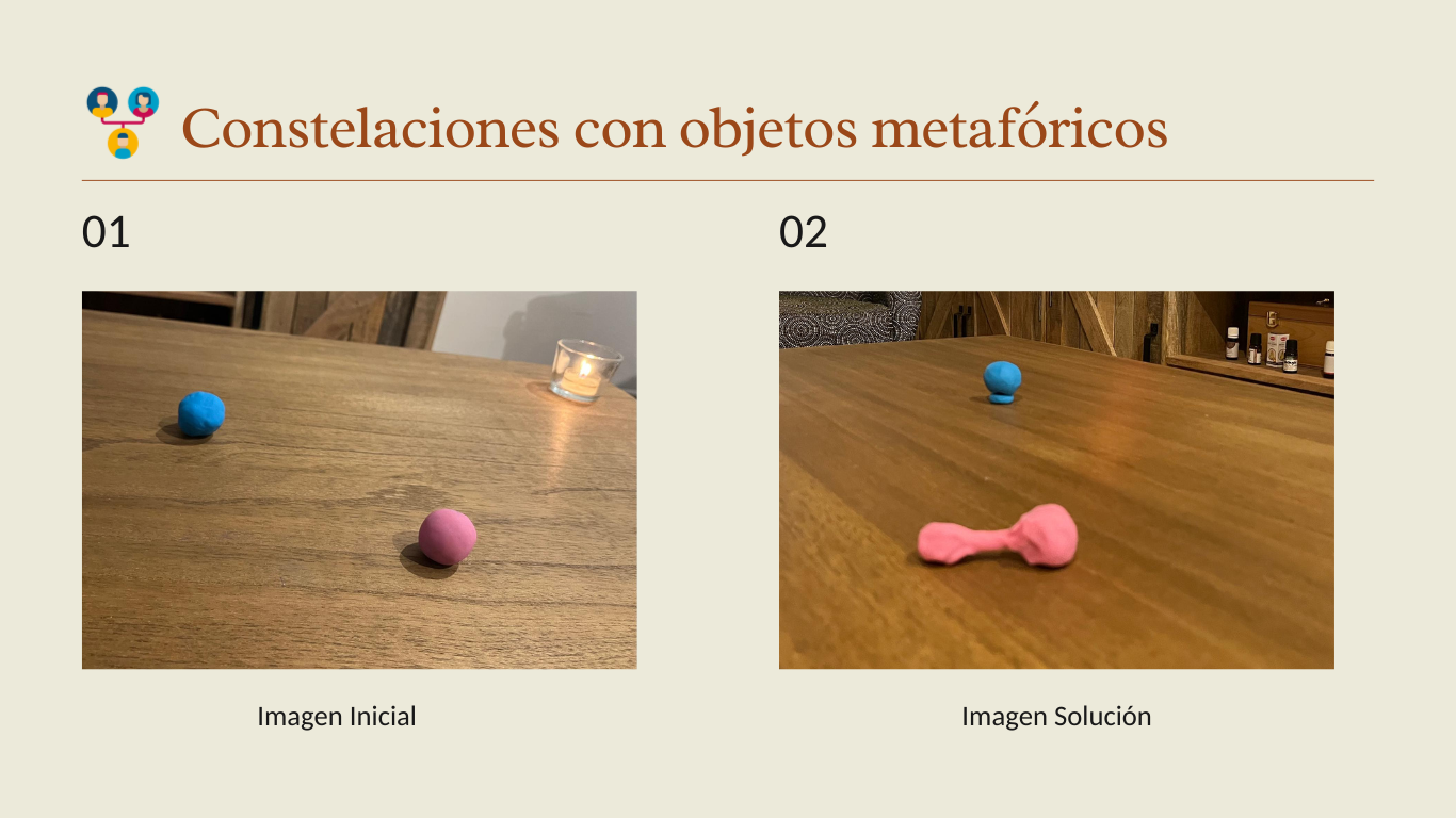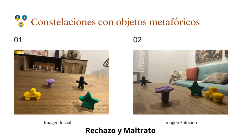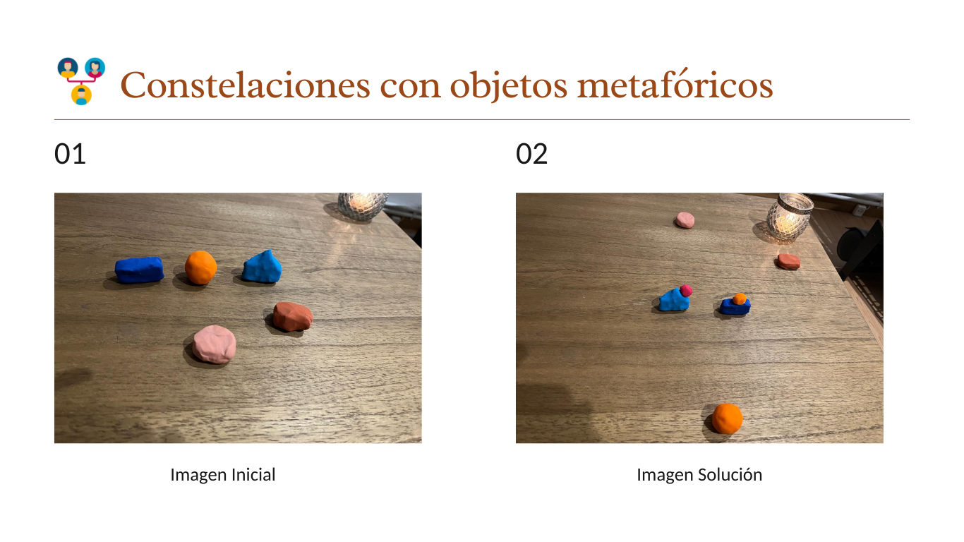 En lugar de utilizar a otras personas para representar a los miembros del sistema familiar, aquí se emplean objetos, metáforas y visualizaciones para crear el escenario de la constelación. Esto permite: